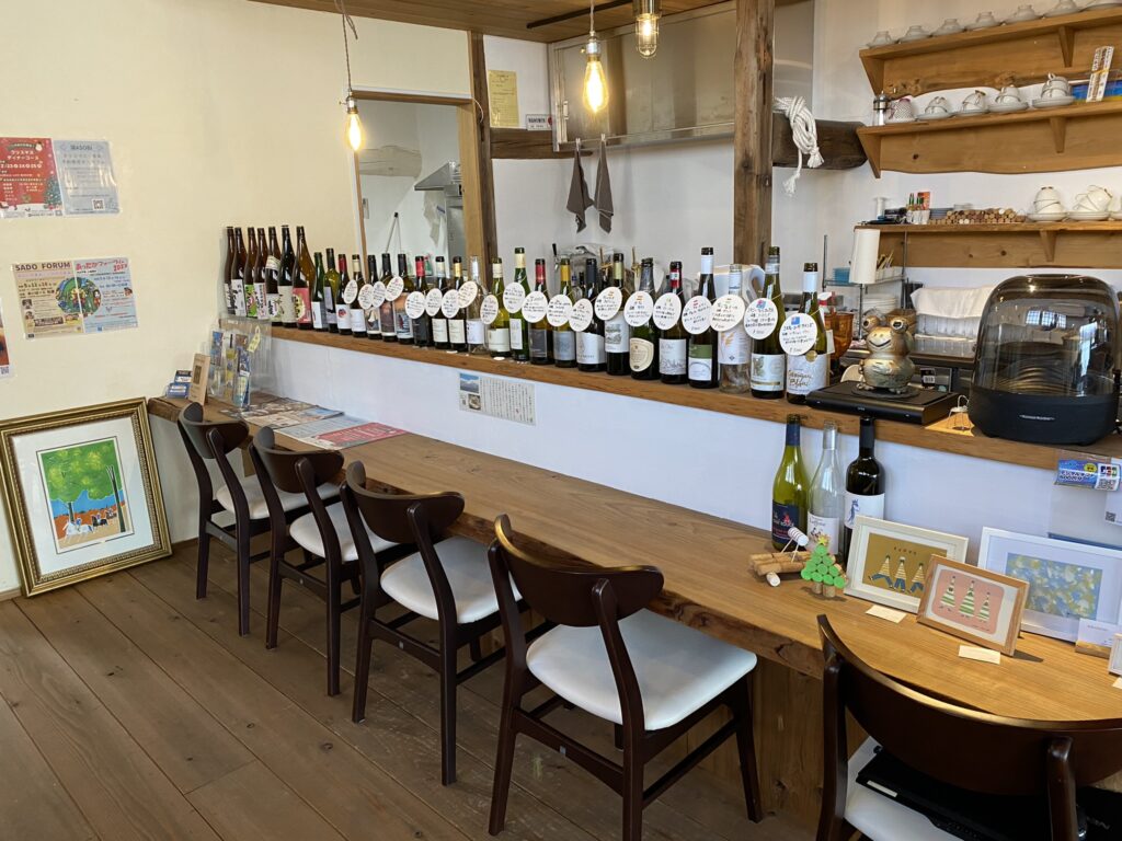 店舗は両津港から車で約3分。加茂湖畔にあります。