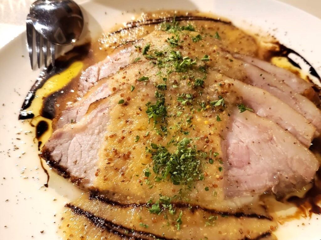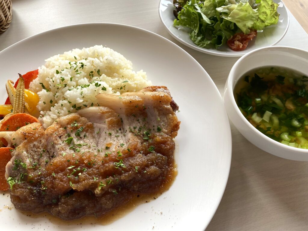 肉好きにはこちら。県産豚肉のロースト。ボリューミーでお腹いっぱいになります。